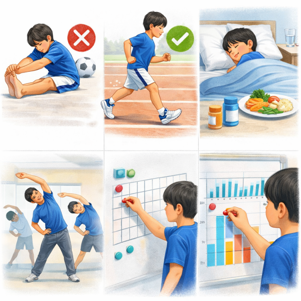 まず大切なのが睡眠です。しっかり休むことで体の回復力が高まると考えられています。また、栄養バランスの良い食事も重要で、成長期の体を支えるためには欠かせません。