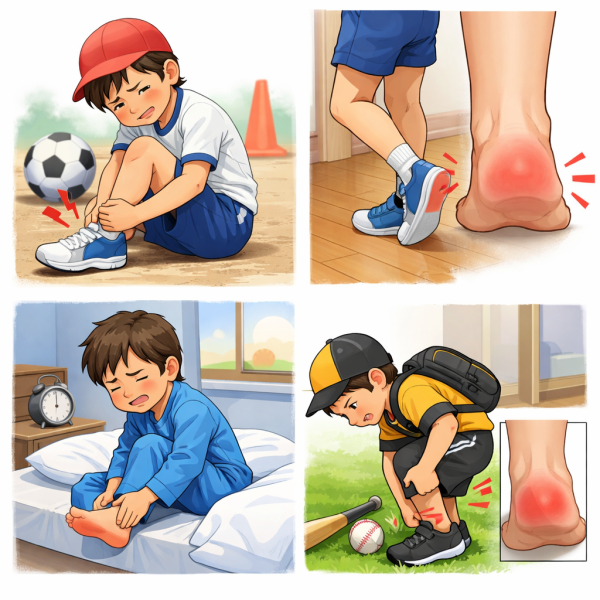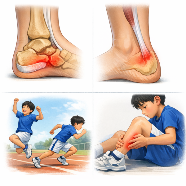 特に8〜15歳くらいの時期に多く見られ、この時期は骨が急激に成長する一方で、筋肉や腱の柔軟性が追いつきにくいとされています。そのバランスの崩れが、かかとの痛みにつながると考えられています。