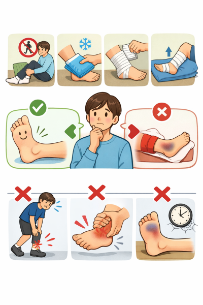 そう感じる方は多いですが、初期対応がその後の回復に影響すると言われています。特に捻挫は見た目より内部のダメージが大きいこともあるため、早めのケアが大切です。ここでは、歩ける場合でも意識したい対処法をわかりやすく解説します。