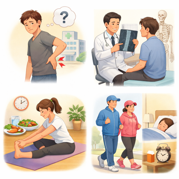 長時間同じ姿勢を避ける、軽い運動を取り入れる、体を冷やしすぎないなどの習慣が腰の負担軽減に役立つと言われています。日常の小さな工夫がコンディション維持につながると考えられています。