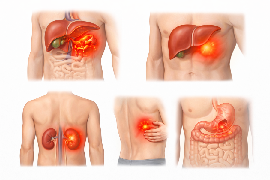 • 消化器系疾患(潰瘍・十二指腸炎など)で右上腹部が痛むケース
