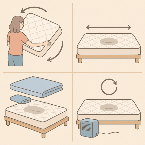• 裏返し・位置変更・タオルやトッパー併用・トッパー単体使用・除湿とローテーションの習慣化など