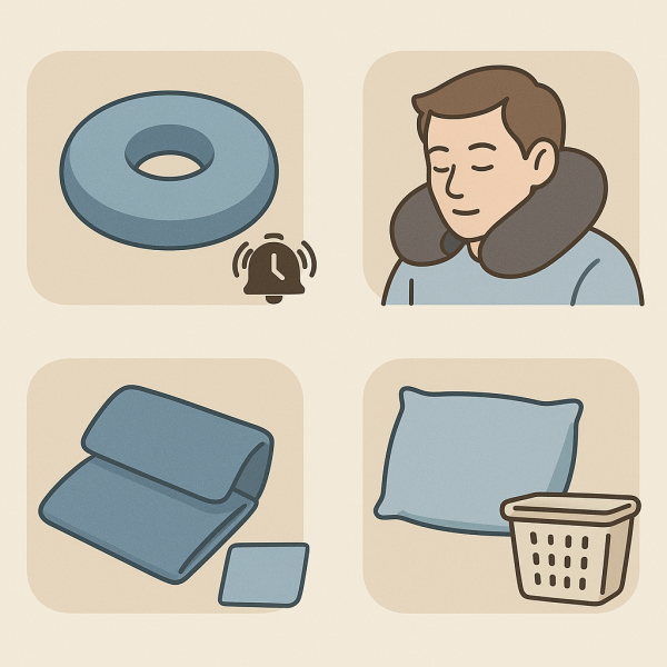 机で寝る枕を快適に使うには、呼吸を意識した顔の位置、しびれを防ぐ腕の置き方、そして定期的な清潔管理がポイントになります。どれも小さな工夫ですが、ちょっとした配慮で休憩の質が大きく変わると考えられています。