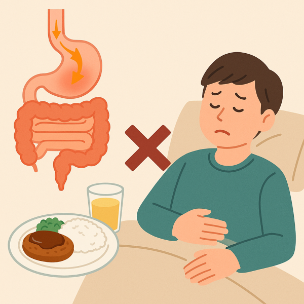 また、食後の血流は胃腸に集まるため、横になることで胃の動きが低下し、消化が十分に進まないまま朝を迎えることもあるとされています。このような状況が繰り返されると「寝ると楽なのに、起きるとつらい」という状態につながりやすいと指摘されています。