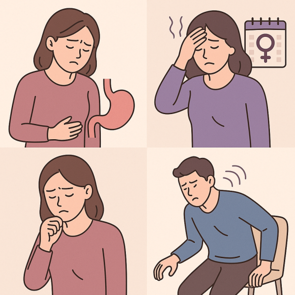 女性の場合は**月経前症候群(PMS)**が関わっている可能性もあるとされています。排卵から月経にかけてホルモンバランスが大きく変化し、吐き気や頭痛、イライラなどが出ることがあるそうです。特に、朝の時間帯は体がまだ活動モードに切り替わっていないため、不調を強く感じやすいとも言われています。これは個人差が大きく、「寝ていると楽だが、起きるとつらい」と感じる女性も少なくないようです。体調の変化と周期を記録してみることで、PMSとの関連に気づくきっかけになる場合もあるとされています。