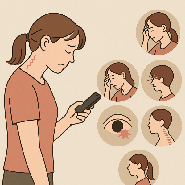 「スマホ首」は、首まわりの骨や筋肉に負担がかかることで、さまざまな不調を引き起こすと言われています。代表的な症状としては、首や肩のこり、頭痛、めまい、腕や手のしびれ、さらには眼精疲労などが挙げられます。