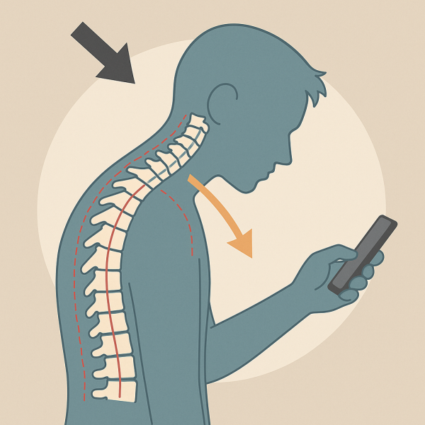 「スマホ首」とは、長時間のスマートフォン操作などで首の骨(頸椎)の自然なカーブが失われ、まっすぐに近い状態になることを指すといわれています。医学的には「ストレートネック」や「前方頭位姿勢(Forward Head Posture)」と呼ばれ、現代人に増えている姿勢のひとつです。