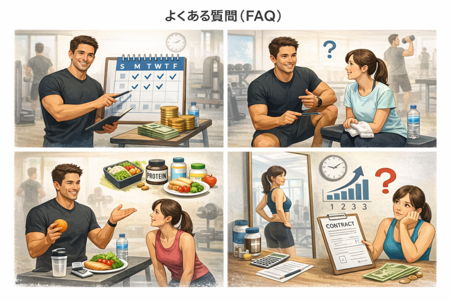 パーソナルトレーニングを検討している人の多くが、最後に細かい疑問で迷うと言われています。頻度や効果、食事管理など、始める前に知っておきたいポイントをここでまとめて整理しておきましょう。小さな不安を先に解消しておくことが、納得してスタートするためのコツと考えられています。