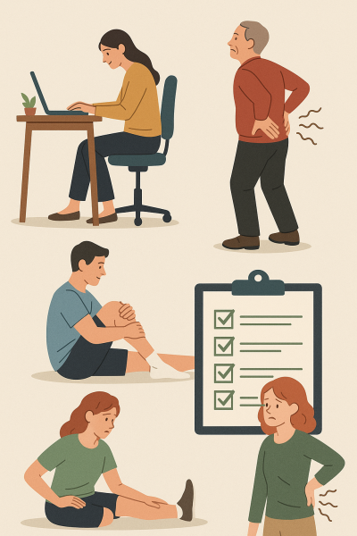 - 自分でできる症状チェックリスト(「いつもより長く座ったら痛む」「歩きづらくなる」「足のしびれを感じる」など)