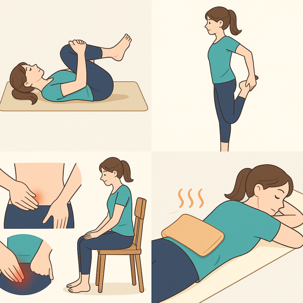 - 温め療法・ツボ押し・日常動作の工夫(座り姿勢・立ち上がり)