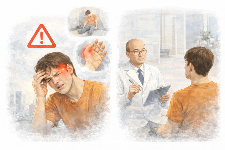 脈に合わせてドクドク響くように痛む場合は、片頭痛の可能性が高いと言われています。特に左側だけに出るケースも多く、動くと悪化しやすいのが特徴です。「階段を上っただけでガンガンする…」そんな経験はありませんか? 吐き気や光・音への過敏が同時に起こることもあるため、これらの症状も合わせて確認すると見分けやすくなります。