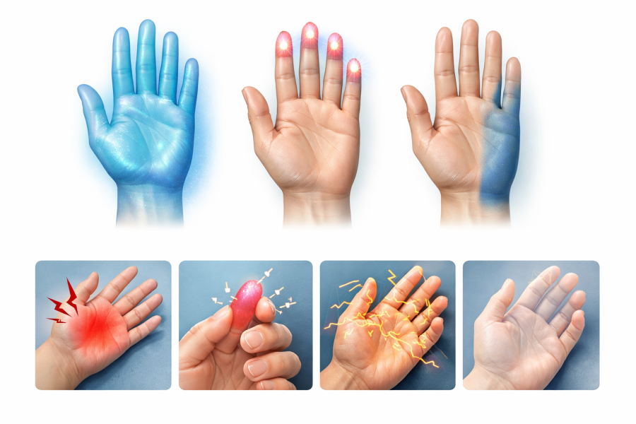 「手のひら全部がジンジンする」「親指と人差し指だけ感覚が鈍い」など、場所によって体感はかなり変わります。