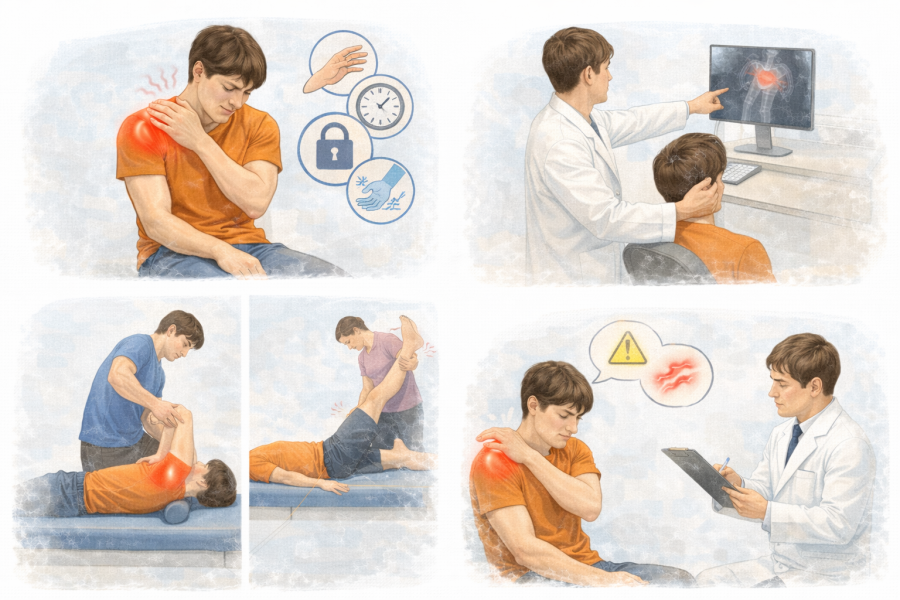 • どんな時に専門医へ(痛みが続く・しびれ・可動域制限など)