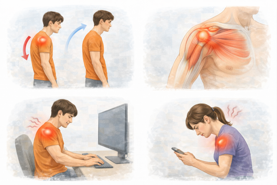 巻き肩・猫背が肩・肩甲骨に与える負担