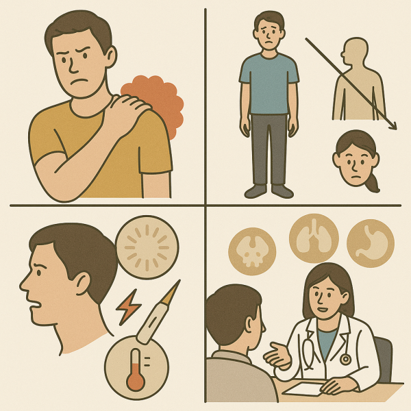 さらに、体重減少や発熱など他の不調を伴う場合も注意が必要だとされています。「背中だけじゃなくて、最近食欲もないんだよね」と話されると、複数の要素が関連している可能性があると説明されることがあります