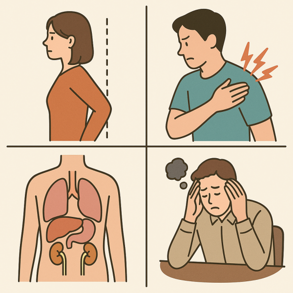 「背中の痛みって、どこから来ているんだろう?」と相談を受けることがあります。実際、背中の痛みは一つの理由だけで起きるわけではなく、複数の要因が関わっていると言われています。今日は、その代表的なカテゴリを一緒に見ていきましょう。