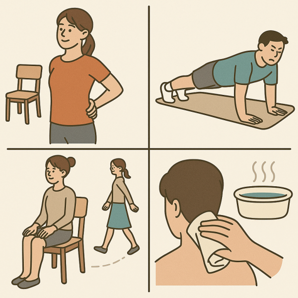 次に、ストレッチや体幹トレーニングを少しだけ取り入れる方法があります。「いきなりきつい運動はしづらいけど、軽いストレッチならできそう」と話される方も多く、背中まわりの筋肉をゆるめることで緊張が和らぐと紹介されています