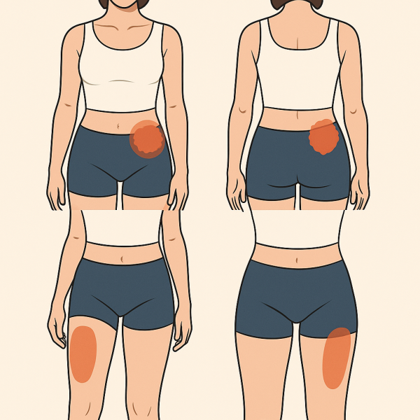 足の付け根といっても、痛みの出る場所はさまざまです。前側に出やすい痛みは、股関節唇の損傷や腸腰筋の炎症が関与しているケースがあると言われています。内側に響くような痛みは、内転筋や恥骨周辺の不調、または鼠径ヘルニアや婦人科系のトラブルが背景になることもあります。外側に感じる場合は、大腿筋膜張筋や滑液包の炎症など筋肉や腱の不調が目立ちます。後側の痛みは、坐骨神経痛や腰椎由来の関連痛とつながる可能性があると考えられています。