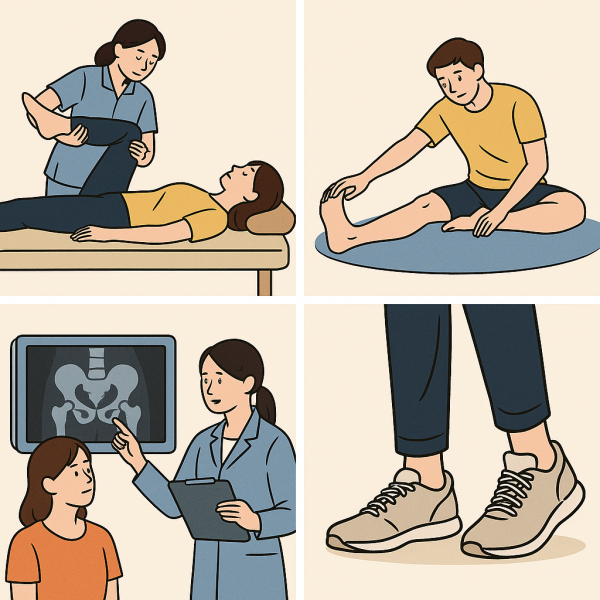 足の付け根が片側だけ痛む場合、状況に合わせた対応をとることが大切だと言われています。ここでは一般的に紹介されている保存療法やリハビリ、生活習慣の見直し、さらに重症例への対応や再発を防ぐ工夫について整理しました。