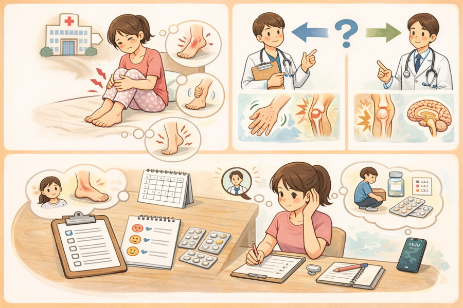 「どこに行けばいいのか悩む…」という声もよく聞かれます。一般的には、足や腰の動きに関連した違和感がある場合は整形外科、しびれが広範囲に及ぶ場合や感覚の変化が気になる場合は神経内科が相談先として挙げられると言われています。まずは相談しやすい窓口から始め、必要に応じて案内を受ける流れになることが多いと紹介されています。