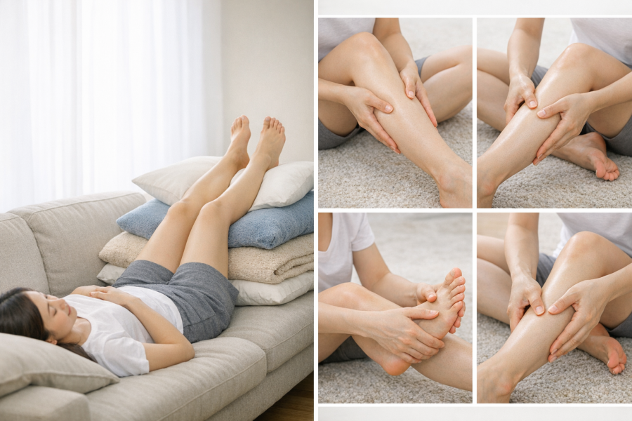 そんなときは、足を心臓より少し高くして横になる方法や、ふくらはぎをやさしくさするケアが紹介されています。下半身にたまった水分が戻りやすくなると言われています。
