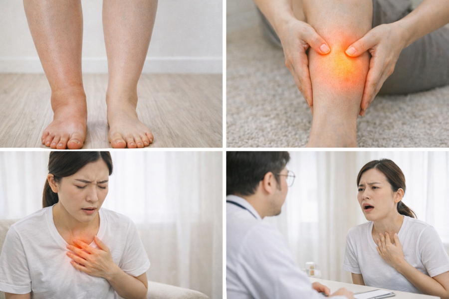 特に、むくみと同時に呼吸が苦しい、横になると息がしづらい、胸に圧迫感があるなどの症状が出た場合は、体全体の循環に影響が出ていることも考えられると紹介されています。こうしたケースでは、早急な医療機関への相談がすすめられています。