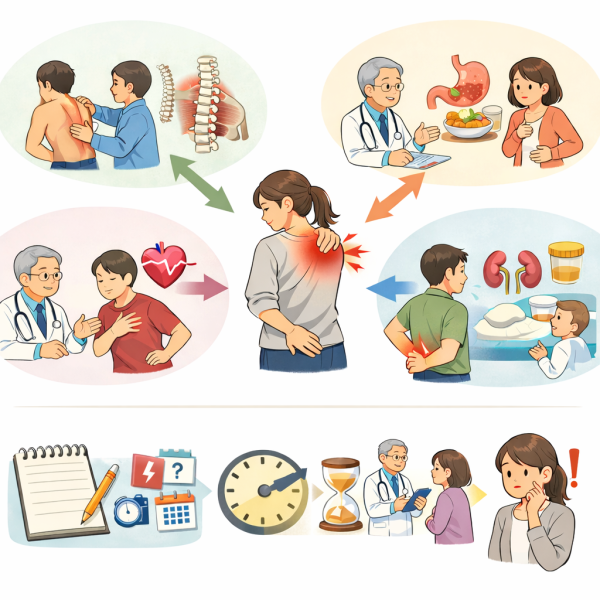 「急に背中が痛いけど、どこに来院すればいいんだろう?」と迷うことはよくあります。背中の違和感は筋肉の負担だけでなく、体のさまざまな状態とつながることがあると言われています。そのため、症状の特徴に合わせて相談先を考えることが大切とされています。ここでは目安となる考え方を整理していきましょう。